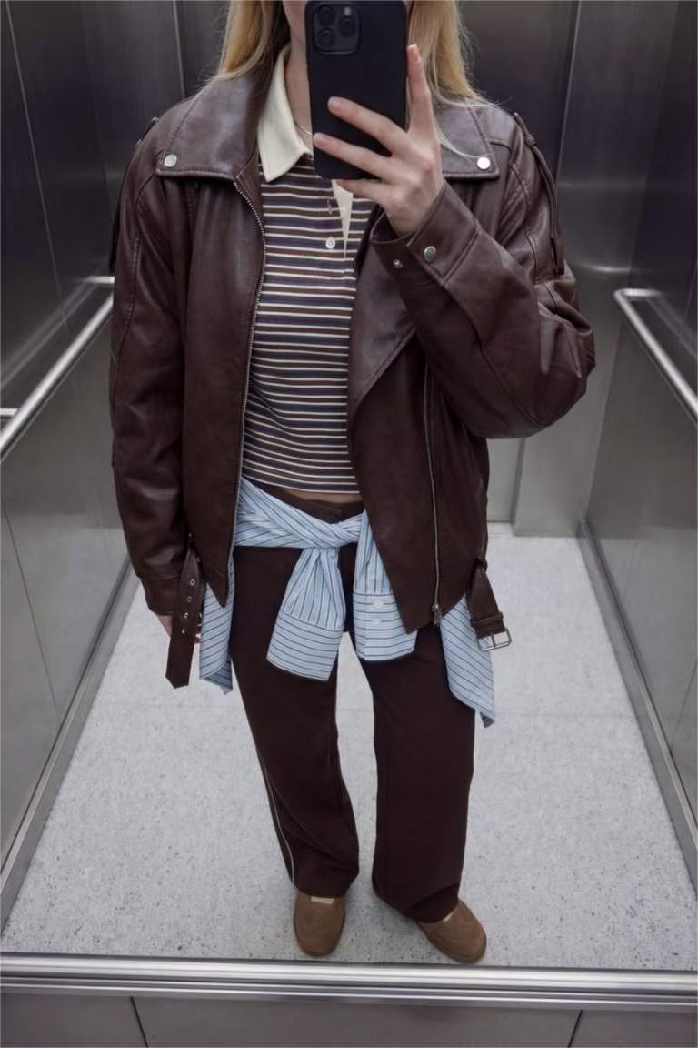 G0701AX/BR444 Defacto Kadın Deri Mont