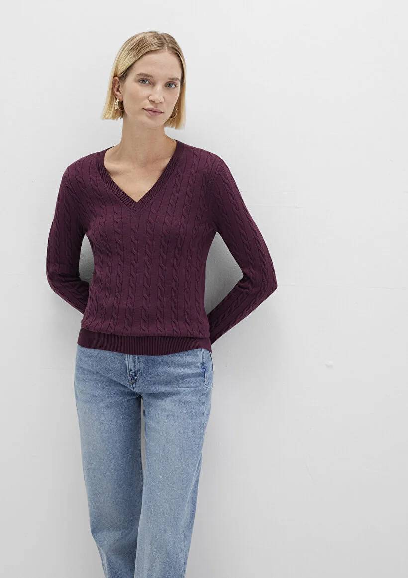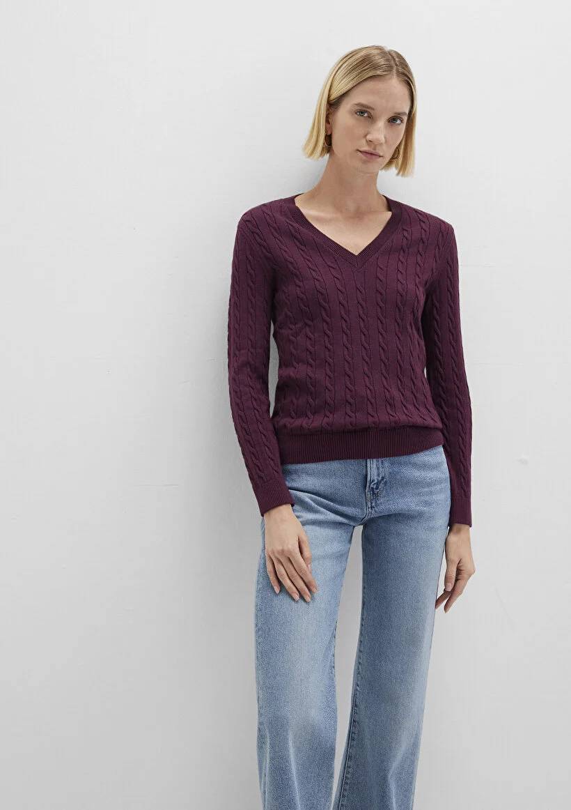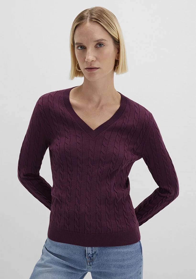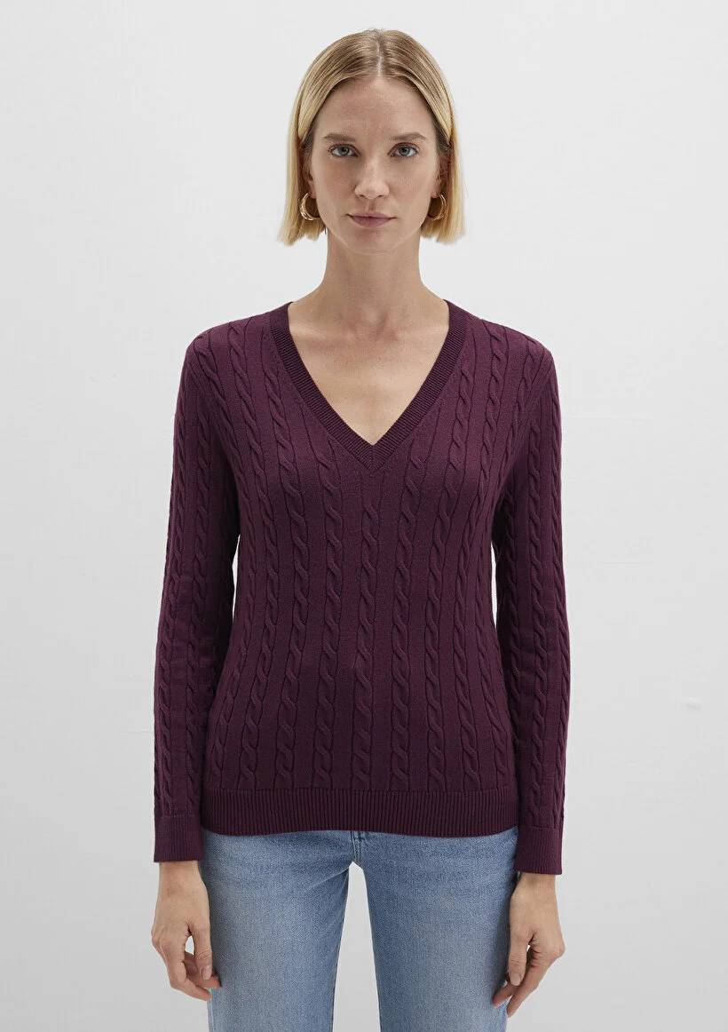 26K134000813_134M03 M1710340-87830 Mavi V Yaka Kadın Kazak