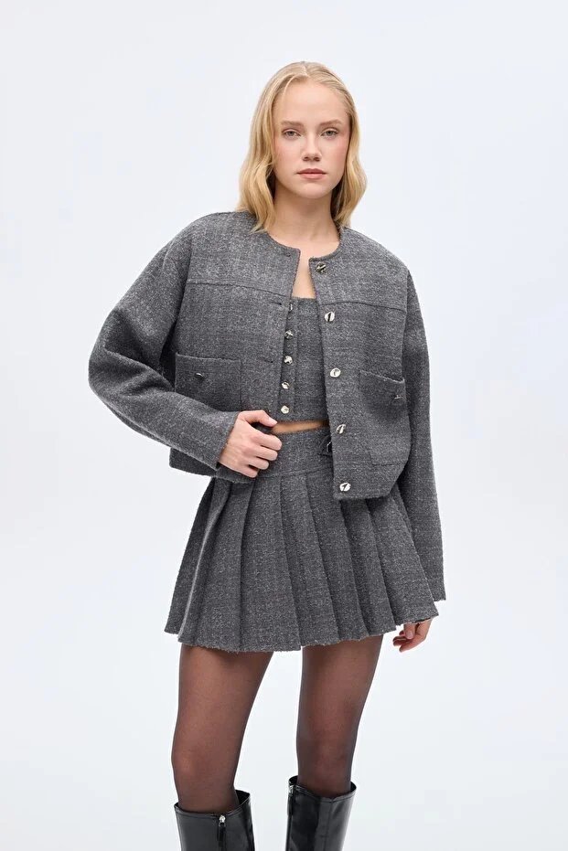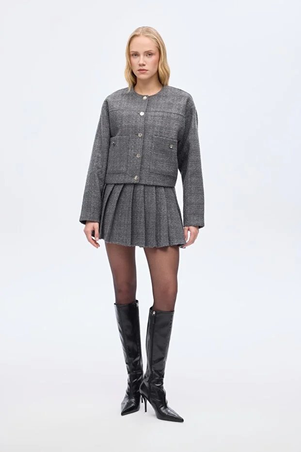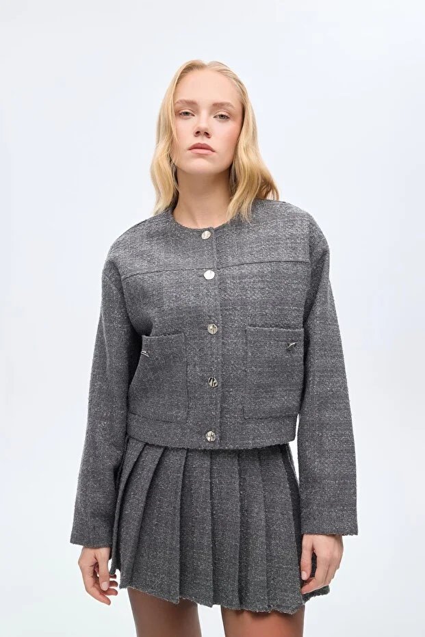 26YW68000042_26 CKT01273 Quzu Düğme Detaylı Kadın Ceket