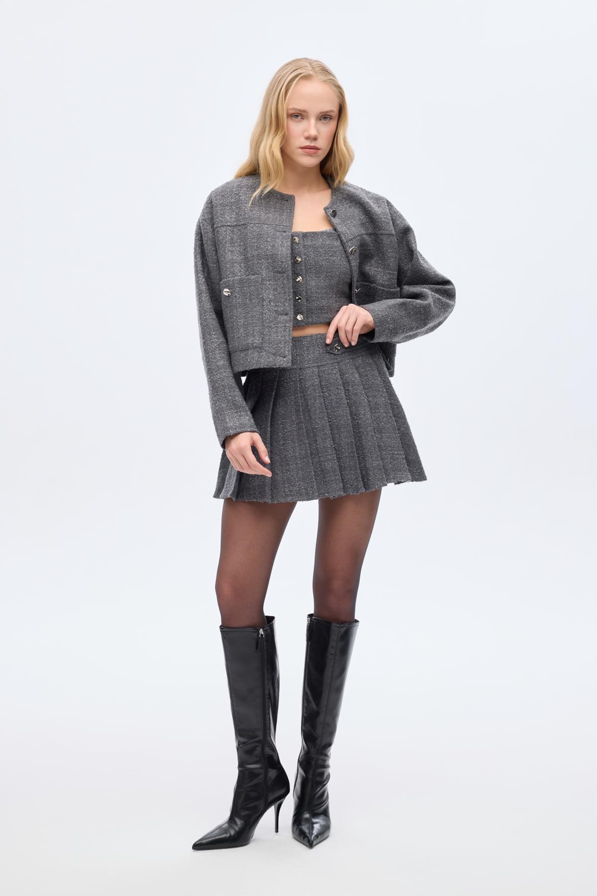 26YW68000045_26 ETK01275 Quzu Düğme Detaylı Kadın Etek