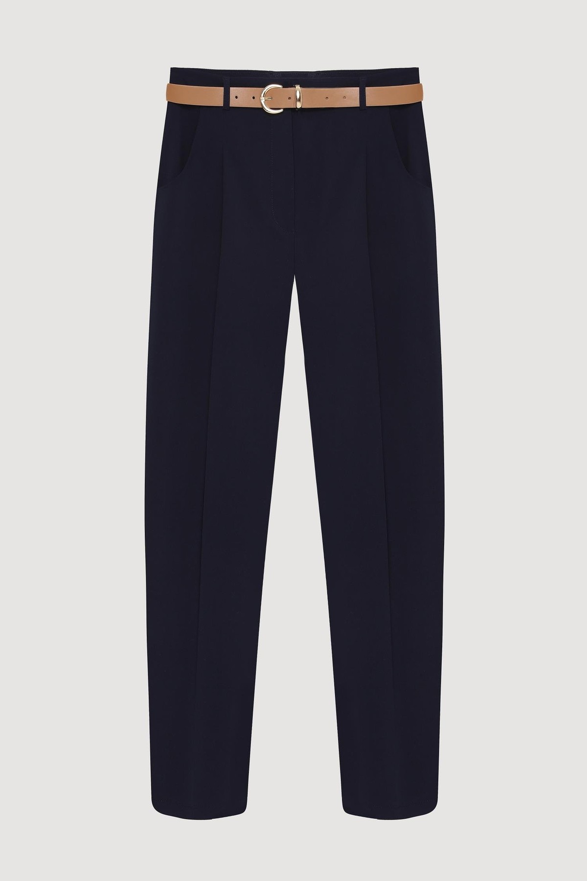 26YW68000031_06 PNT00430 Quzu Yüksek Bel Kemerli Pensli Kadın Kanvas Pantolon