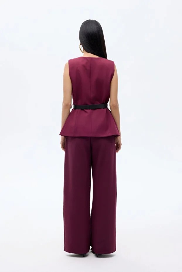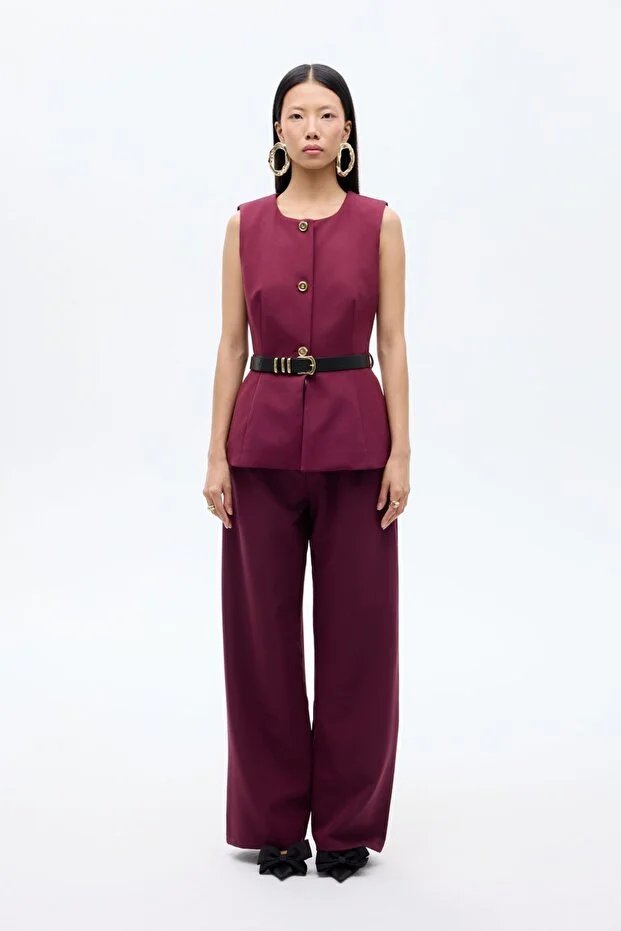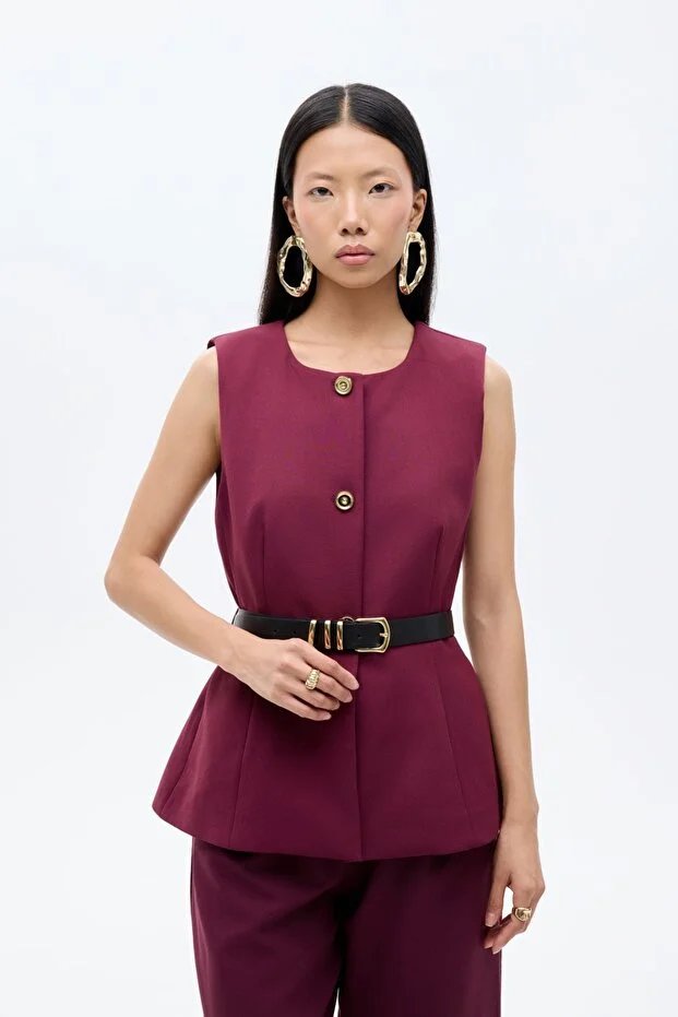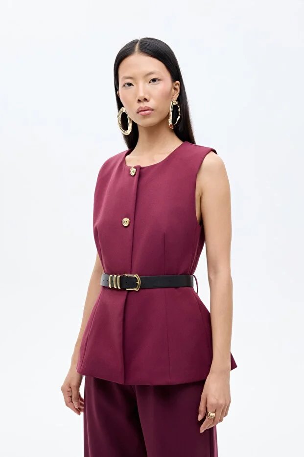 26YW68000007_57 YLK00163 Quzu Bisiklet Yaka Kemerli Kadın Yelek