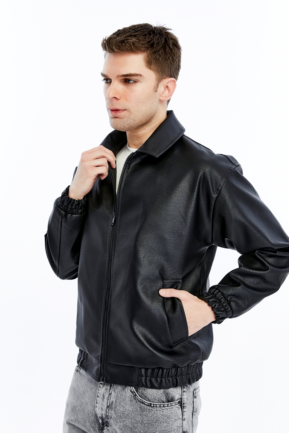 933 Bebe Yaka Erkek Deri Mont ve Ceket