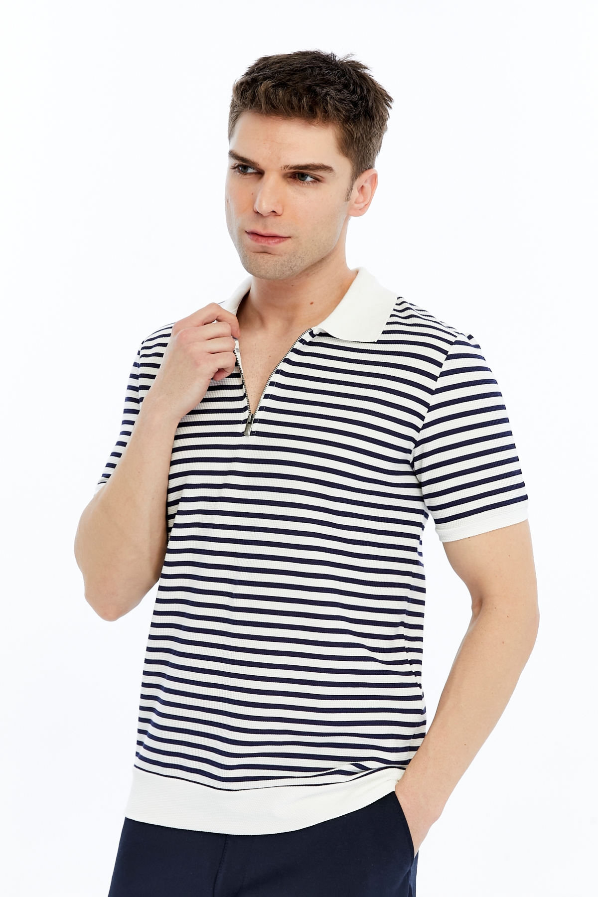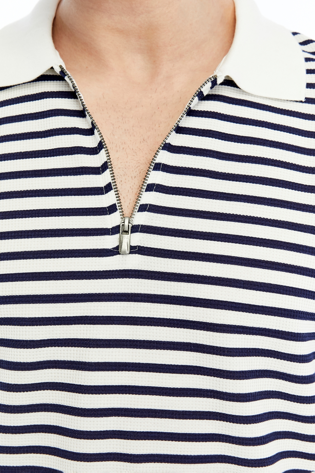 • Ürün Adı : 4055 Gipeli Waffle Yarım Fermuarlı Çizgili Erkek T-Shirt