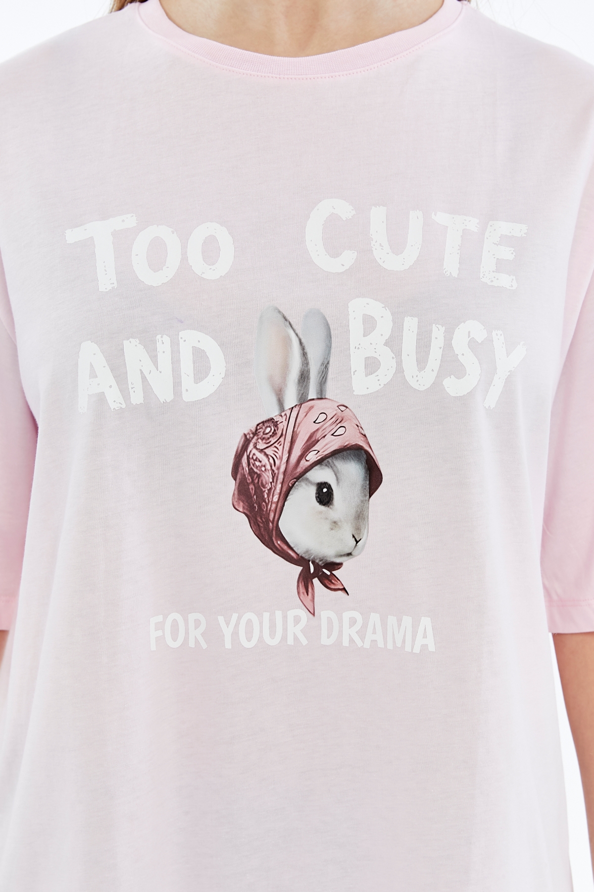 26YI40000078_450 6731 (N-2442) Too Cute And Busy Baskılı  Kadın T-Shirt