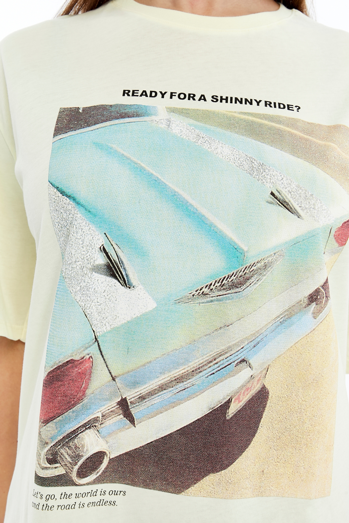 • Ürün Adı : 6789 (N-2440) Mavi Araba Baskılı  Kadın T-Shirt