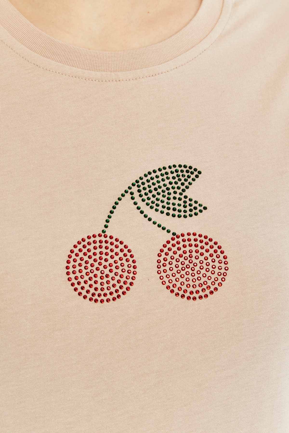 26YDT1000003_42 Kiraz Nakış Baskı O Yaka Kadın T-Shirt