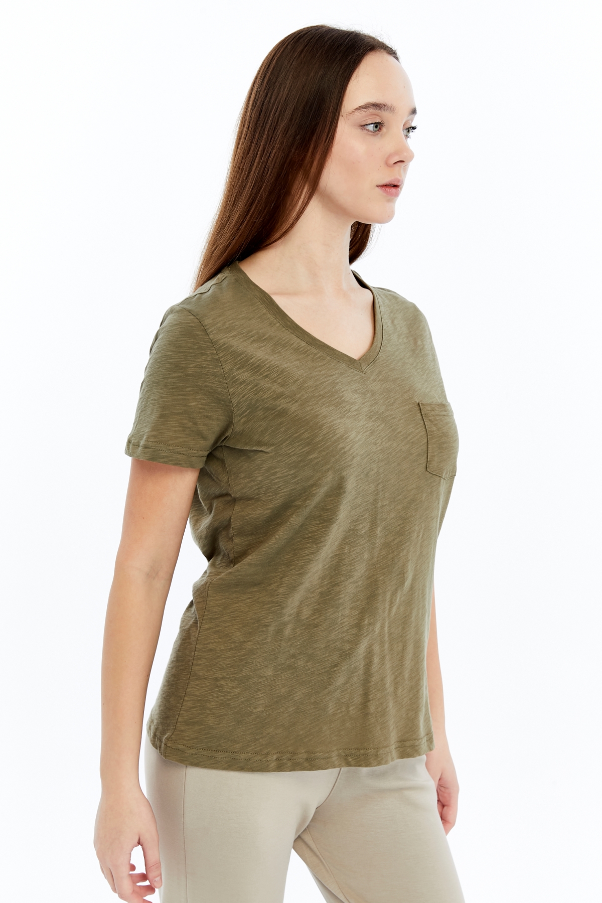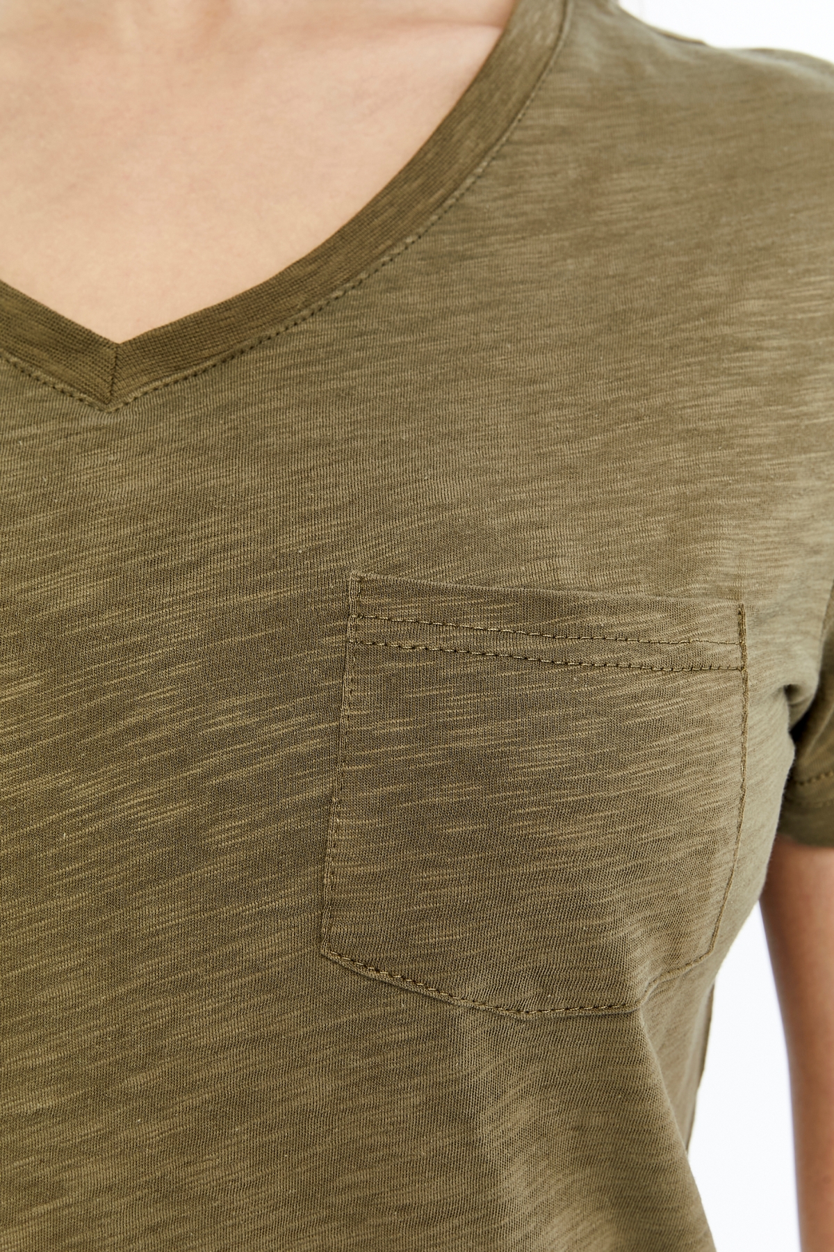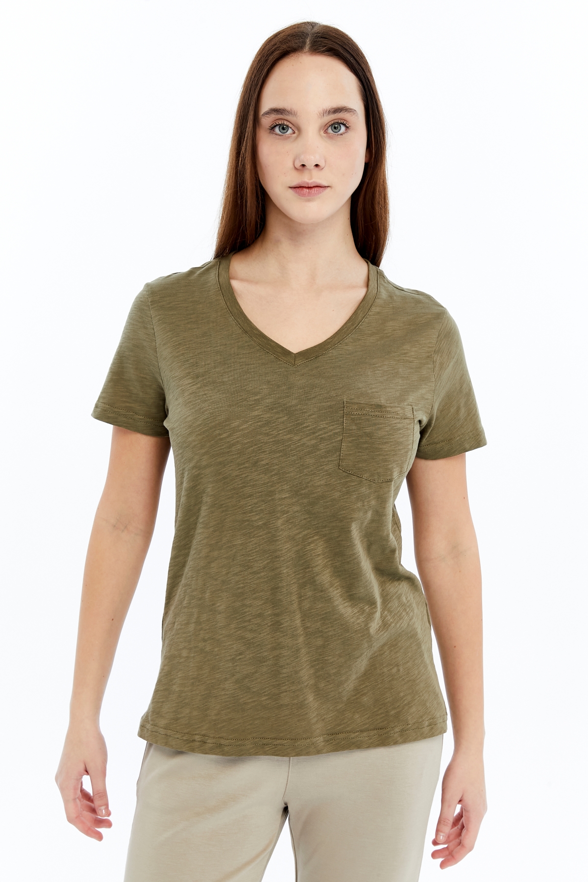 26YAO6000081_07 Viole&More 1001 Flamlı Cepli V Yaka Kadın T-shirt