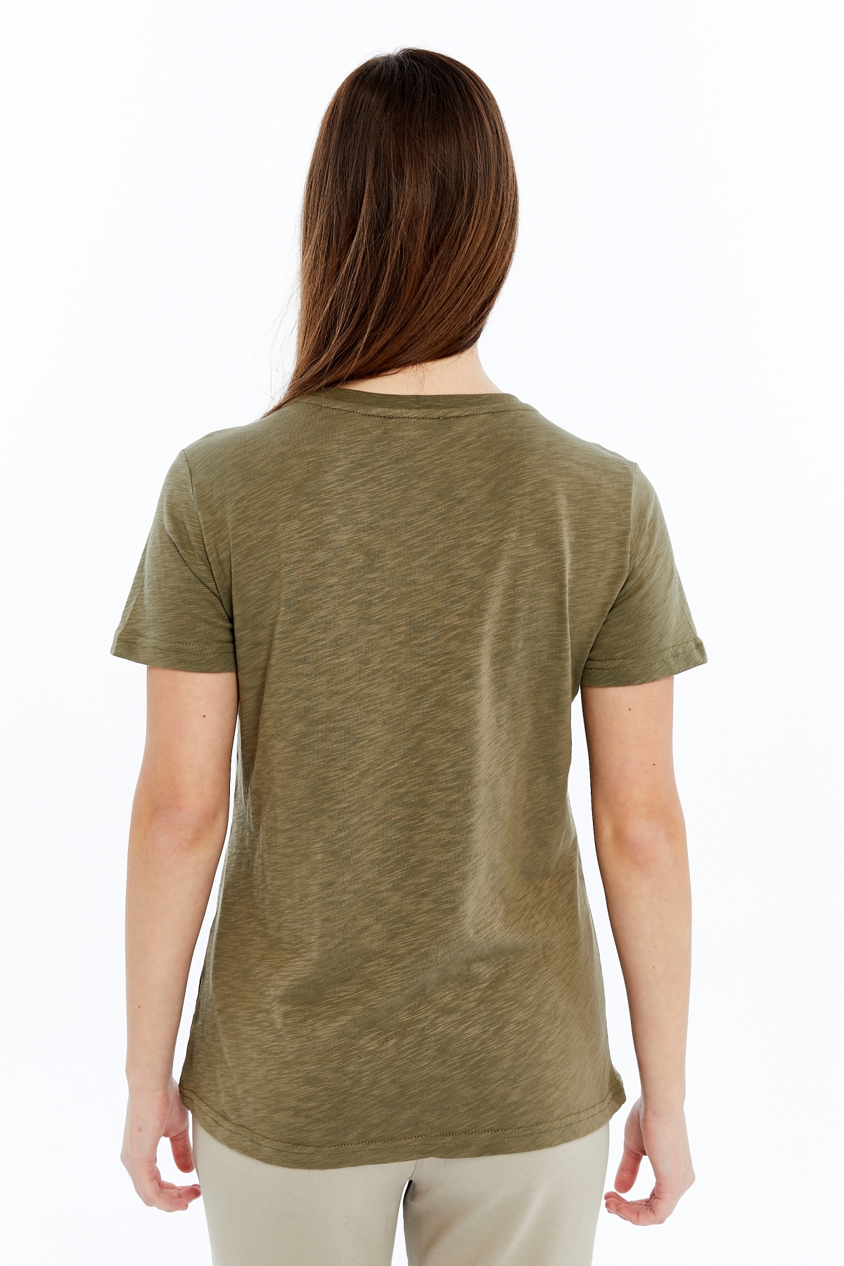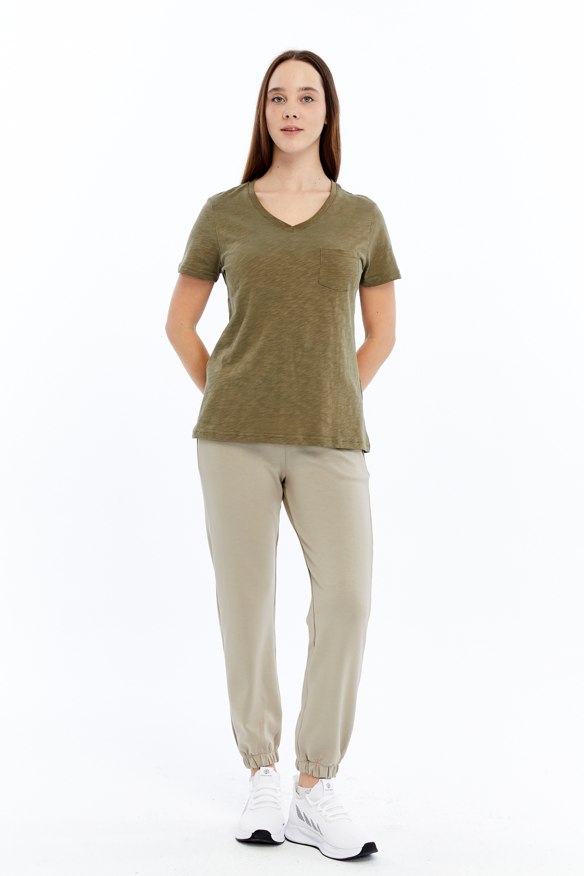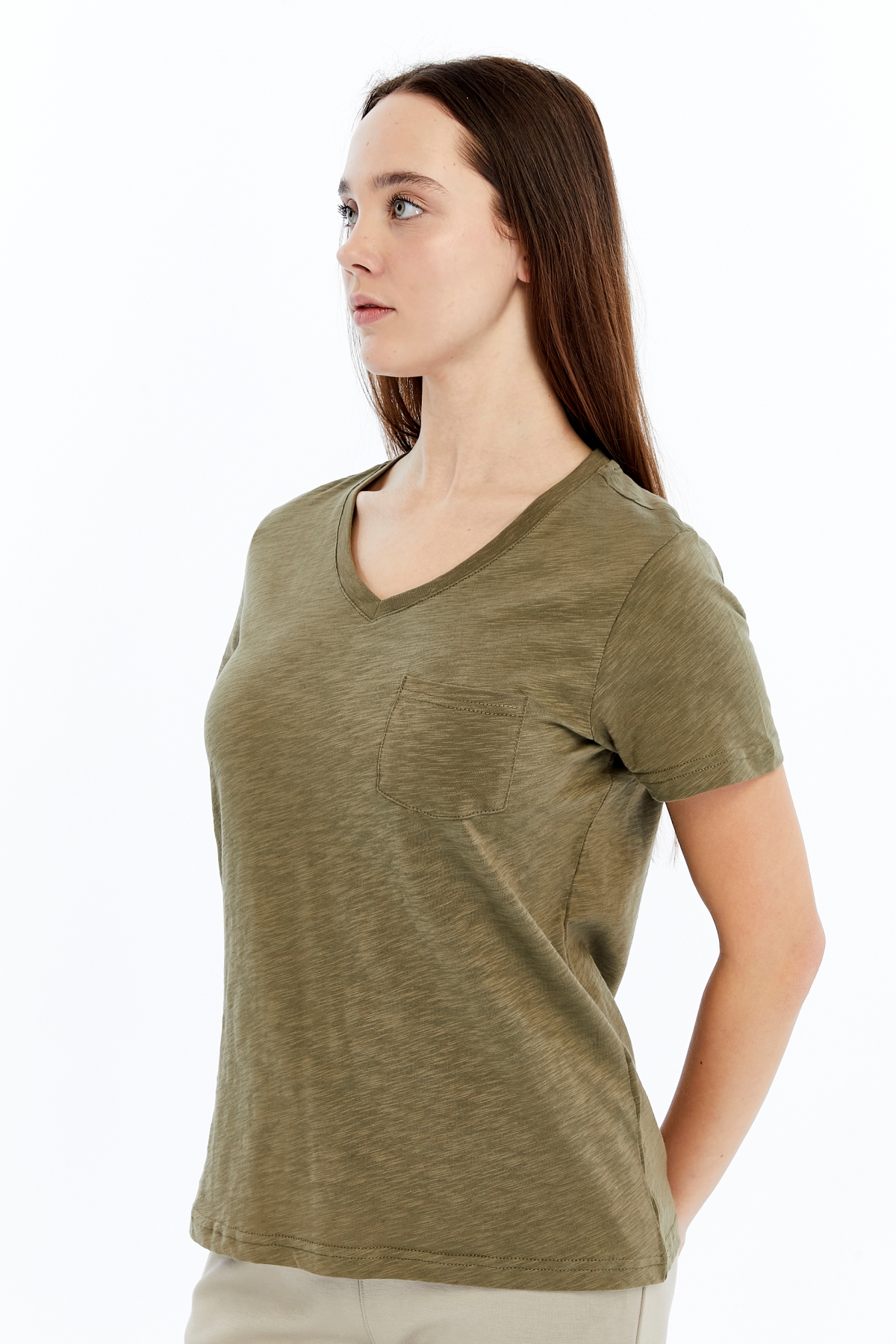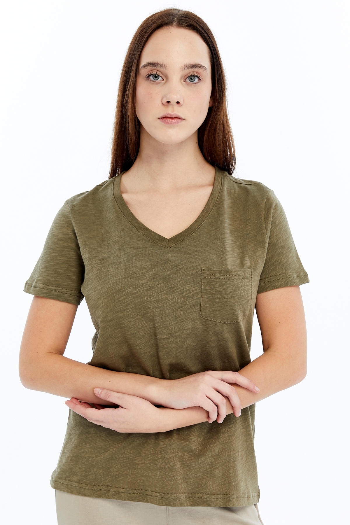 26YAO6000081_07 Viole&More 1001 Flamlı Cepli V Yaka Kadın T-shirt