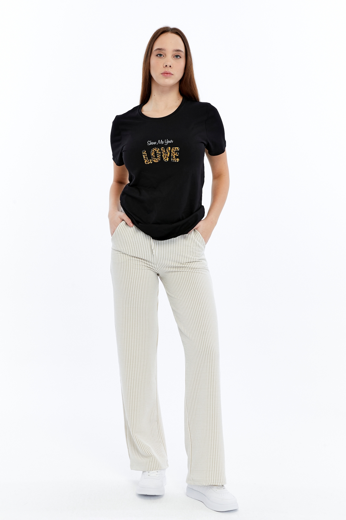 Viole&More Kadın Kanvas Pantolon 2497 Çizgili