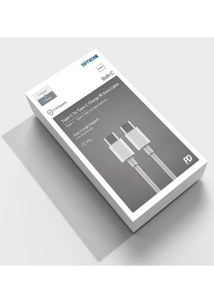 • Ürün Adı : Simex Type-c To Typee-c Data Kablosu SM-T01 Bolt C 1 Metre Beyaz