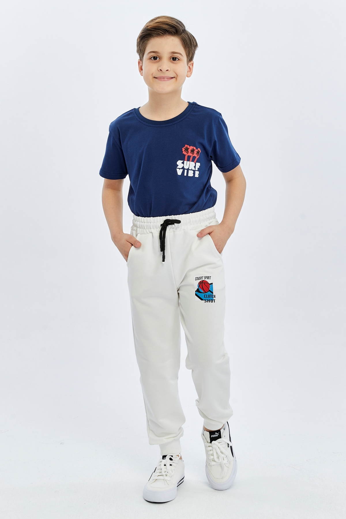 26YSS2000007_12 Basket Baskı 2 İp 5-14 Yaş Erkek Çocuk Eşofman Alt