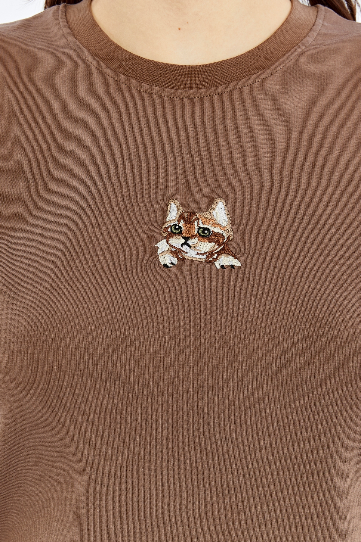 26YAB4000032_9865 001 Kedi Nakışlı Viole Kadın T-Shirt