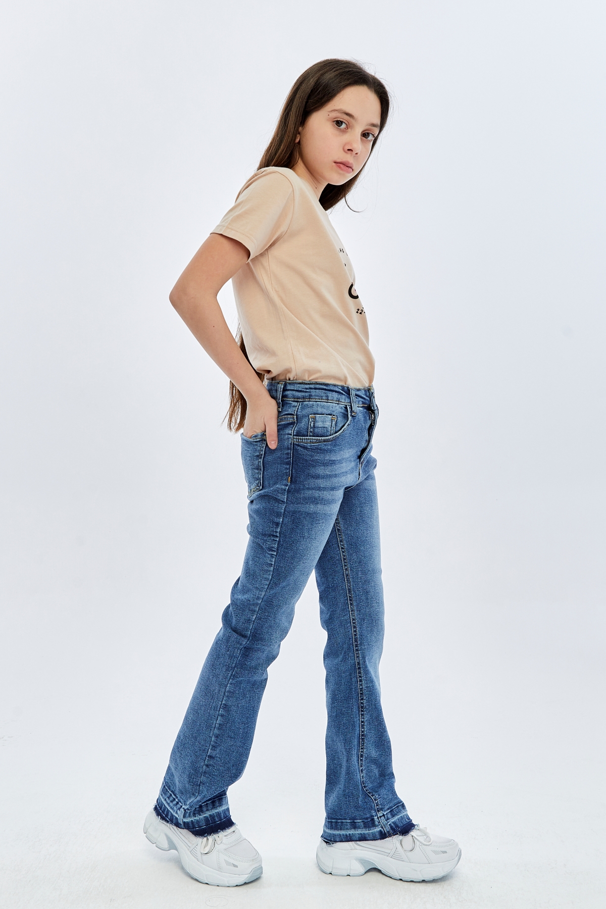 26YLN8000011_05 4062 2-13 Yaş Paça Dikişsiz Kız Çocuk Jean Pantolon