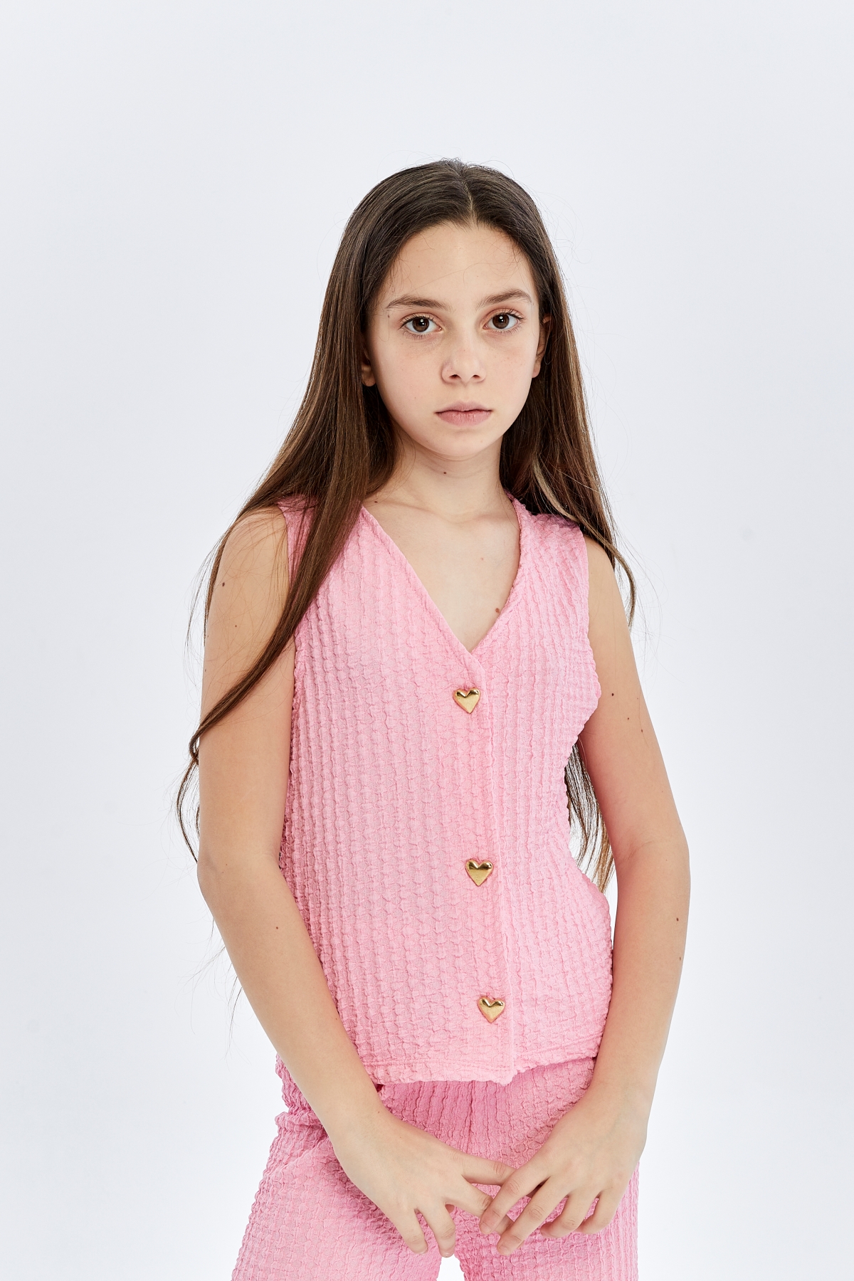 26YEM7000013_59 9938-9919 İspanyol Paça 6-14 Yaş Yelek Kız Çocuk Pantolon Takım