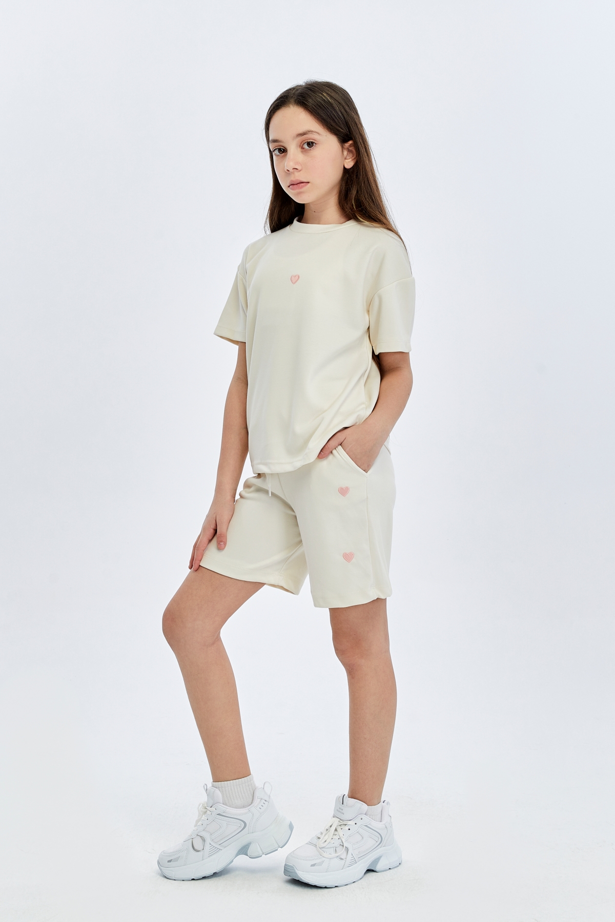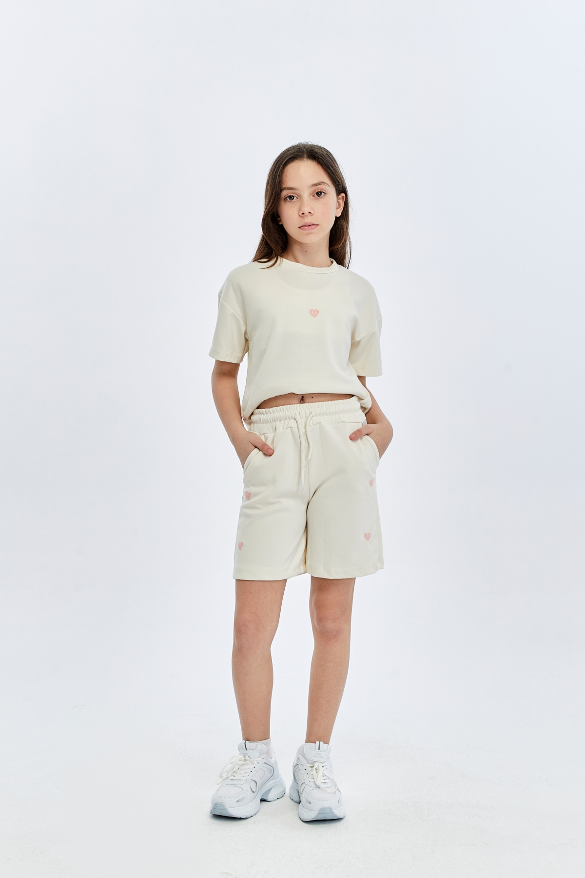 26YEM7000012_19 9926-9974 Kapli Oysho 6-14 Yaş Cepli Kız Çocuk Şort Takım