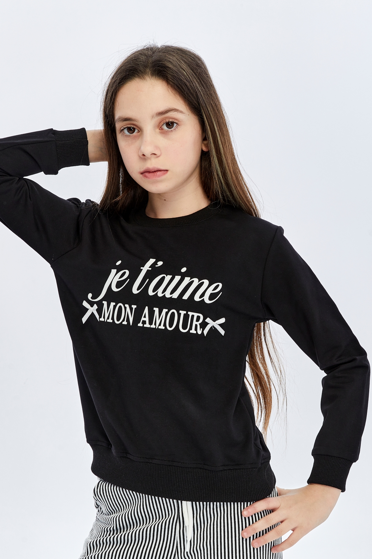 26YSS2000015_01 Je Taime Baskı 2 İp 5-14 Yaş Kız Çocuk Sweat